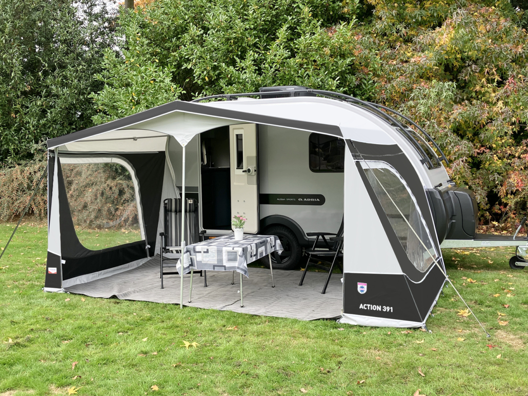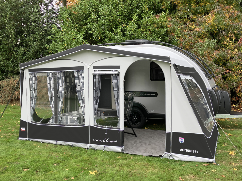 Speziell für den Adria Action 391 Caravan hat Walker das maßgeschneiderte Action Vorzelt 391 entwickelt. Bitte geben Sie bei der Bestellung stets das Baujahr und Type Ihres Adria Action 391 an, um die perfekte Passform zu gewährleisten.