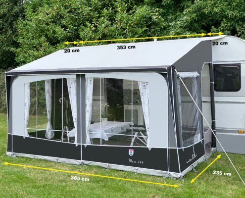 Die Teilvorzelte Maxi 300 und Maxi 380 sind robuste und stabile Lösungen für alle, die beim Camping in Österreich Wert auf eine zuverlässige Verbindung zum Wohnwagen legen.